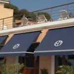 The hotel features 40 rooms with a balcony, furnished with a writing table. The bathrooms come with a bidet, a separate toilet, and a shower, along with hair dryers and bath sheets. Guests can also enjoy views of the sea.